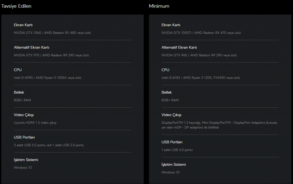 Minumum sistem gereksinimleri: